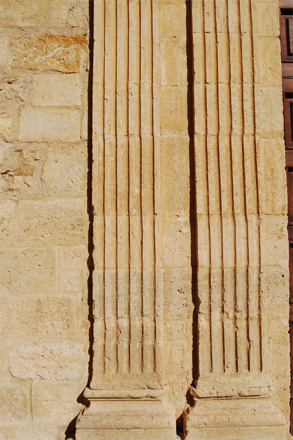 Der Stein, der in Salemi für den Bau verwendet wird und Campanedda genannt wird, ist ein stark zementierter Sandstein, der fast keine Maserungen oder Unterbrechungen hat. Seine Farbe ist natürlich warm und gleichmäßig, mit Schattierungen von hellgelb über rosa bis zu einer intensiveren goldenen Pigmentierung, die er durch Sonneneinstrahlung und Witterungseinflüsse annimmt. Er wurde viel für tragende Wände verwendet und vor allem für Strukturen geschätzt, die besonders raffinierte Techniken erforderten wie Portale, Wandfriesen und Wappen.