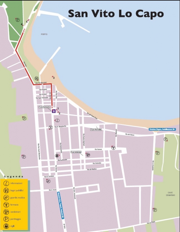 P.zza Santuario (0-1-2), Via Savoia, Via Faro (3-4-5), Via Savoia, P.zza Santuario.