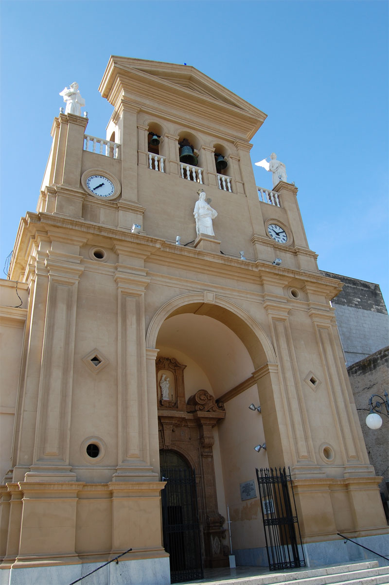 Founded in 1623, restructured in the mid XVIII century on the designs of the architect G. B. Amico, from Trapani, it was completed in the 1950s. It is dedicated to Santa Caterina d’Alessandria, patron saint of Paceco. The inside with a single nave is decorated with eighteenth century stuccoes: The four large altar pieces belonging to the Partenopeo ambient (end XVII – beg. XVIII century), on the lateral altars are interesting. They were donated by the Church of Princess Esse Maria Anna Fardella Sanseverino. The coat of arms of the two families are at the bottom on the right, in the canvas depicting l’Immacolata Concezione-the Immaculate Conception .