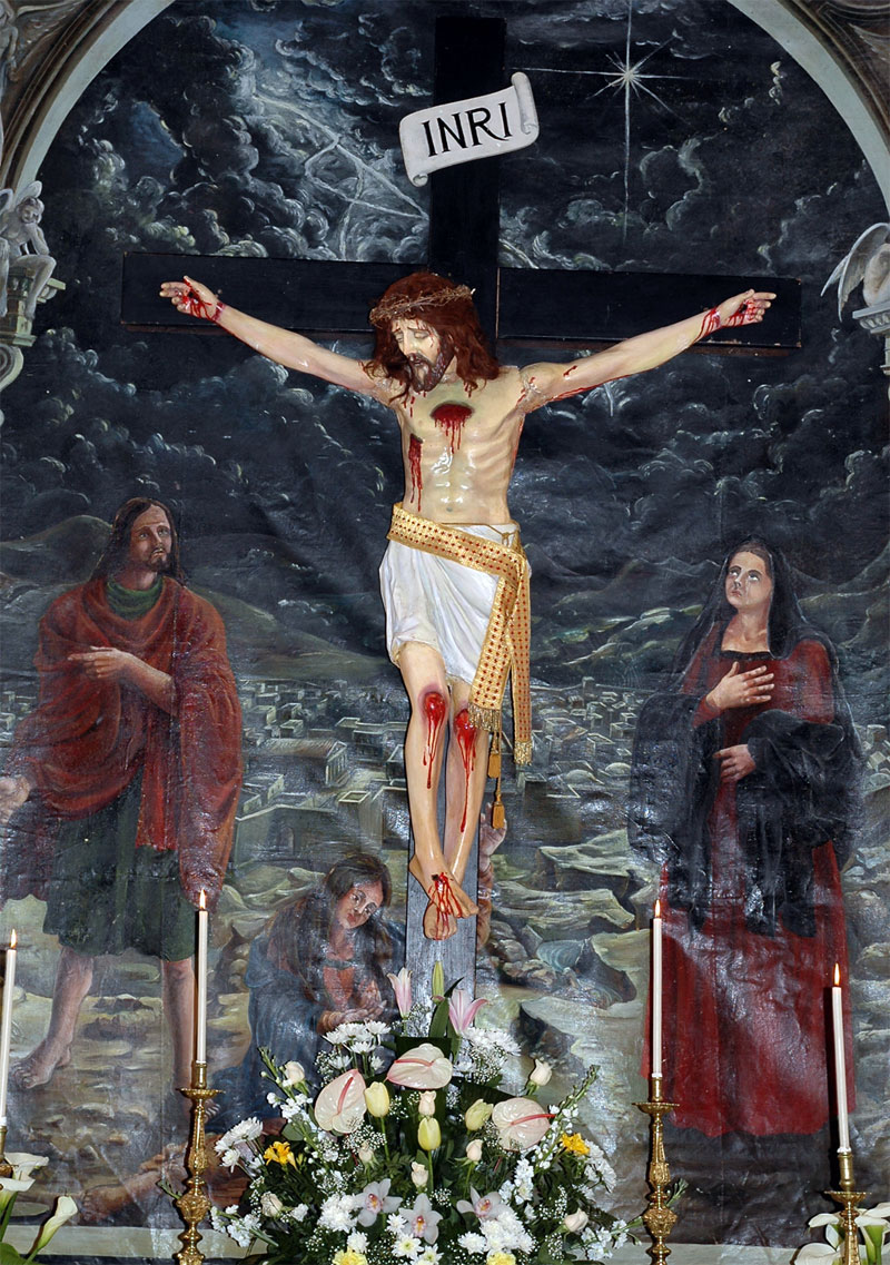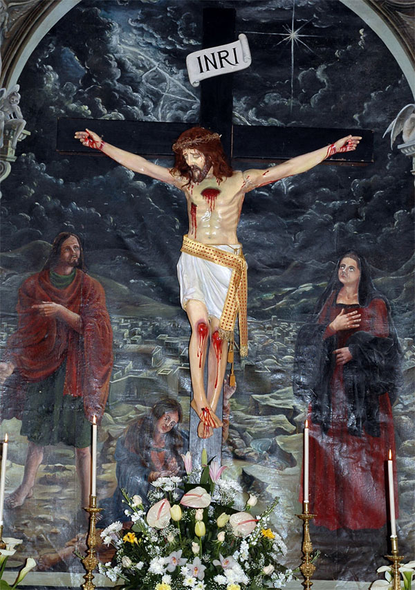 Très frèquentèe est la célébration des rites de la Semaine Sainte qui se déroulent entre dévotion et anciennes usances populaires, commençant le Jeudi par l’Eucharistie de Jésus in Coena Domini. Le premier après-midi du Vendredi a lieu l’émotionnante fonction des trois heures d’agonie, culminant la mort du Christ sur la croix avec l’abaissement de tête, tandis que le soir a lieu la procession du Christ dans l’urne. Le samedi à minuit, le Christ émerge en sortant du sépulcre par le biais d’un mécanisme