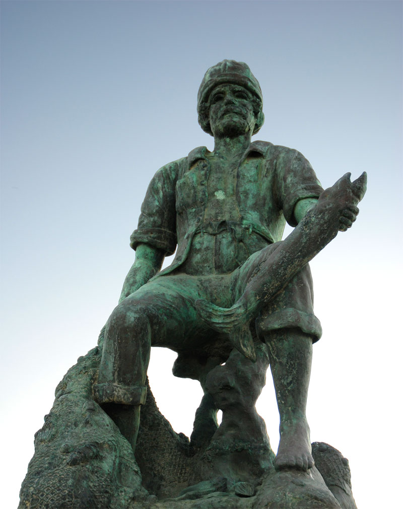 Il monumento al Pescatore è stato realizzato da Francesco Gennaro, scultore originario della vicina Mazara del Vallo. Modellato in argilla e successivamente fuso in bronzo a cera persa è alto 200 cm e ha una base di 80 cm. Il monumento rende omaggio al duro lavoro cui si sottopone ogni giorno chi affronta il mare aperto alla ricerca del pescato.