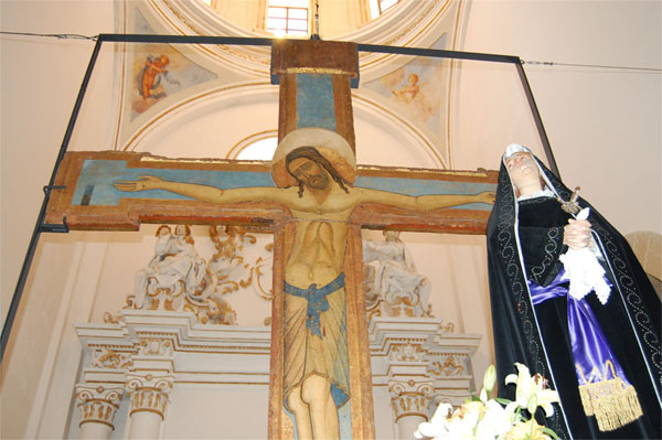 La duecentesca croce lignea dipinta con Cristo in croce nel recto e l'Agnello mistico nel verso. E' certamente da inserirsi tra le opere più interessanti del patrimonio del trapanese.